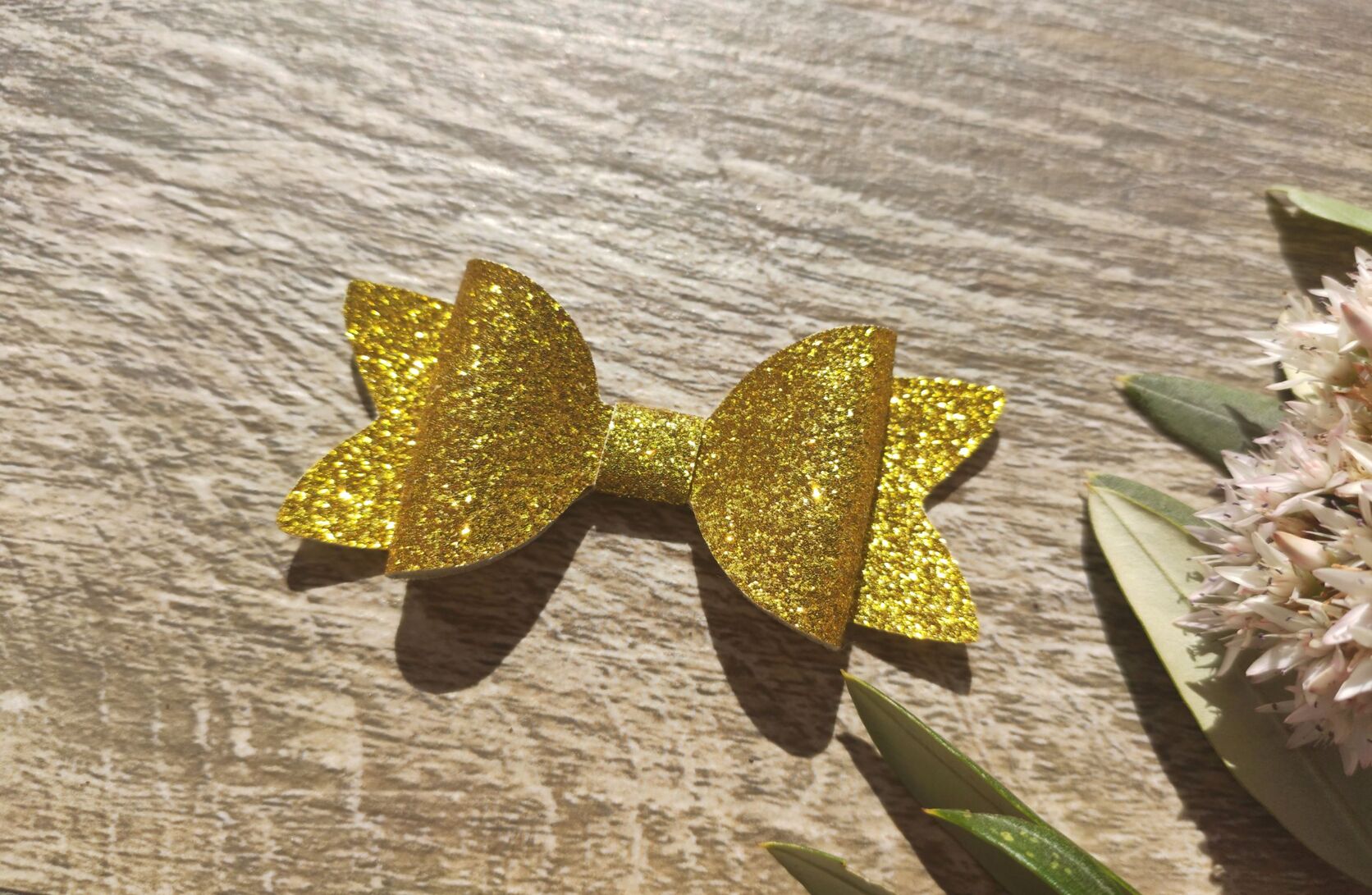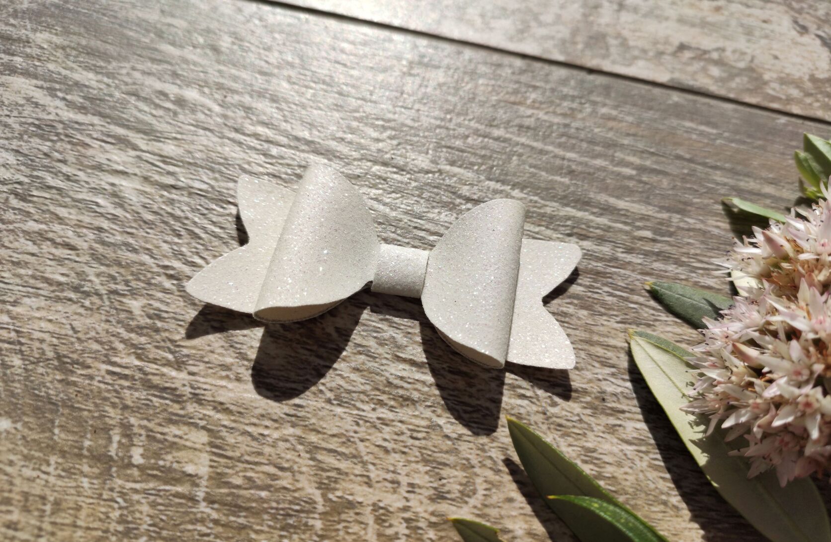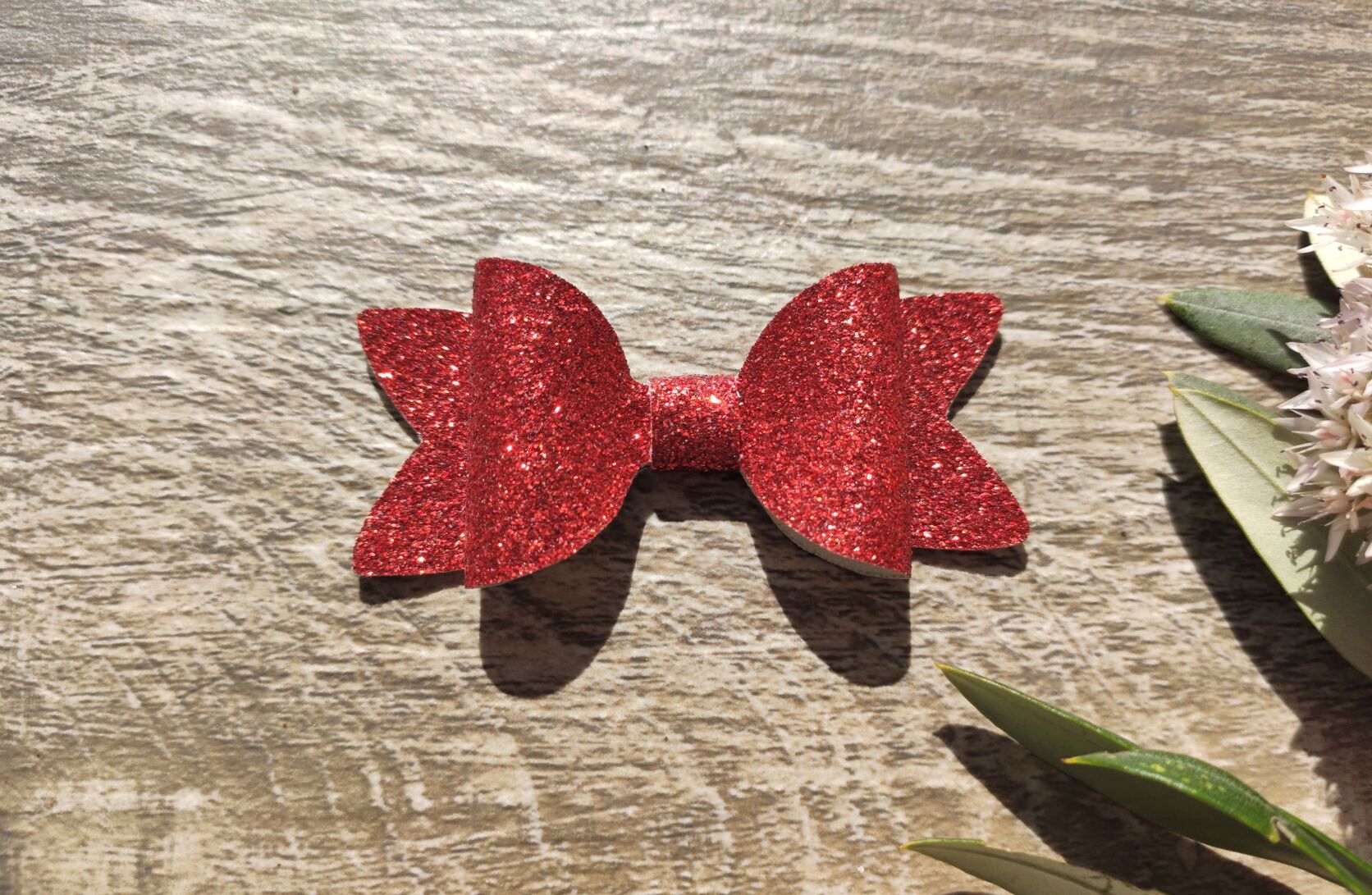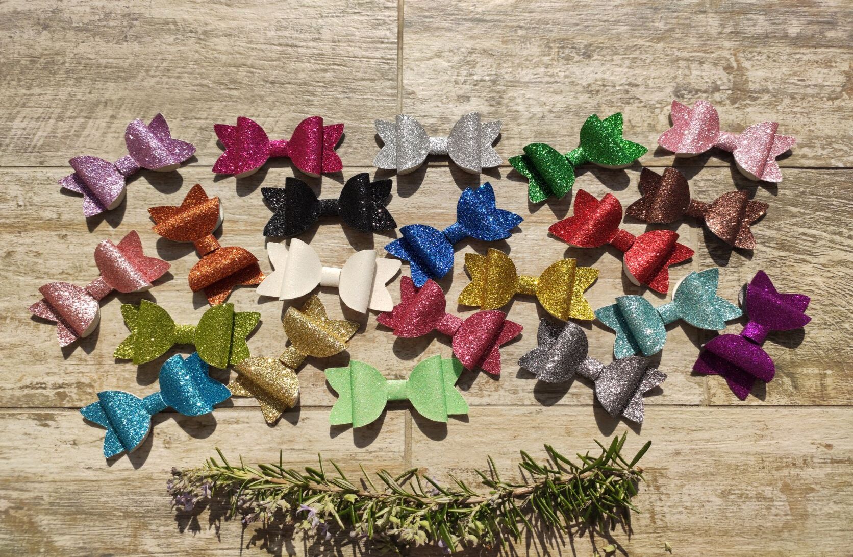 A sparkly hair bow in an assortment of colours. Made from faux leather and fitted with a crocodile clip for easy and firm placement. These mini bows are perfect for shorter hair or anyone who would like to add a bit of colour and quirk to their hair.