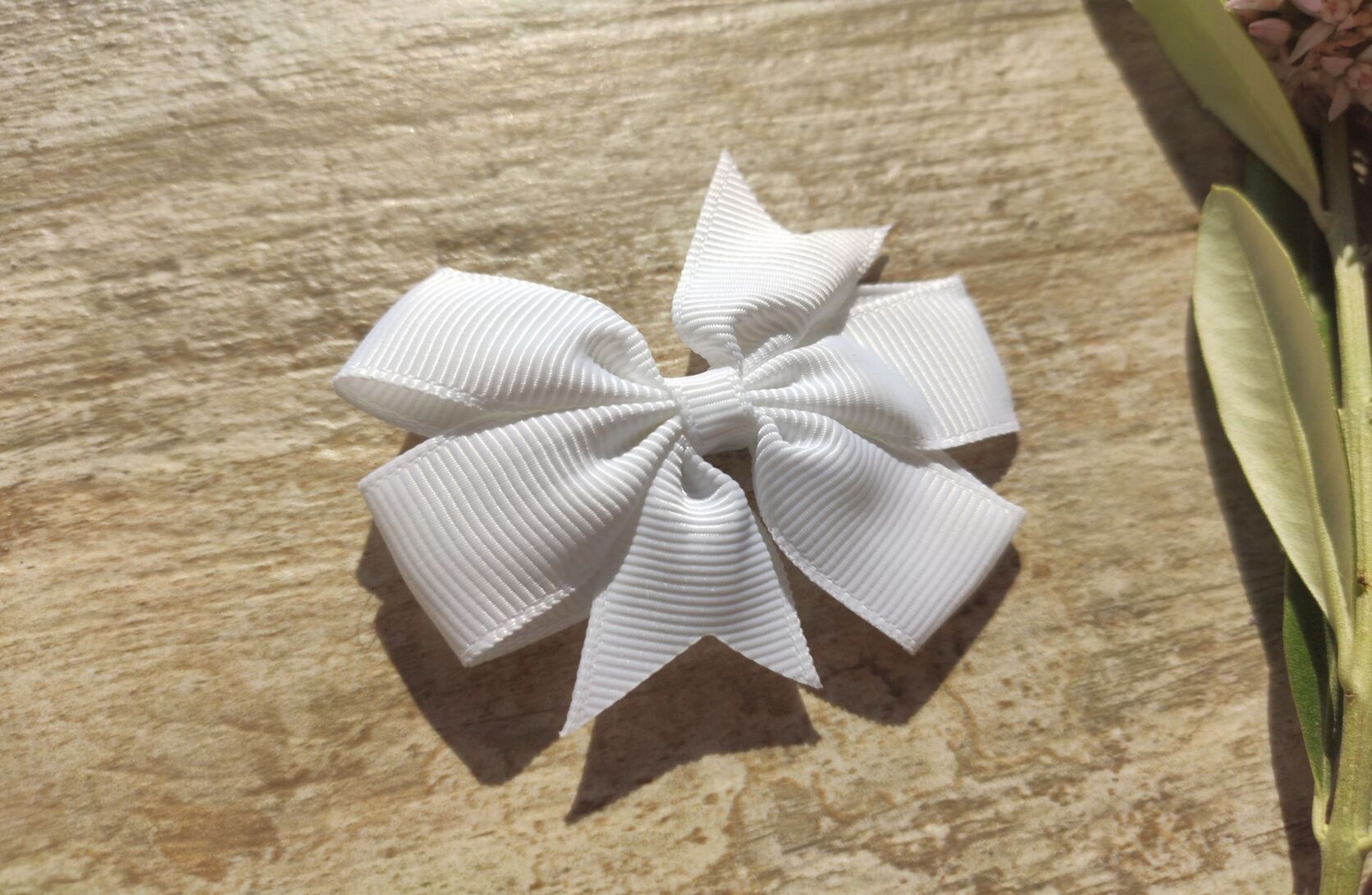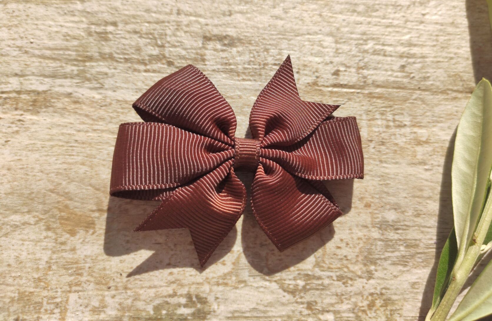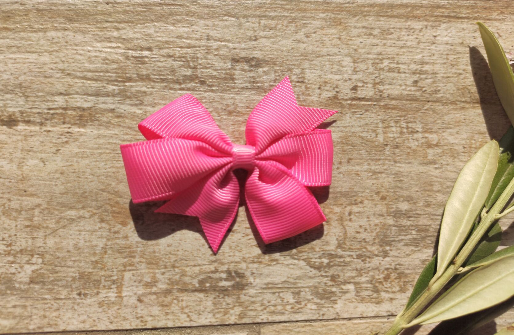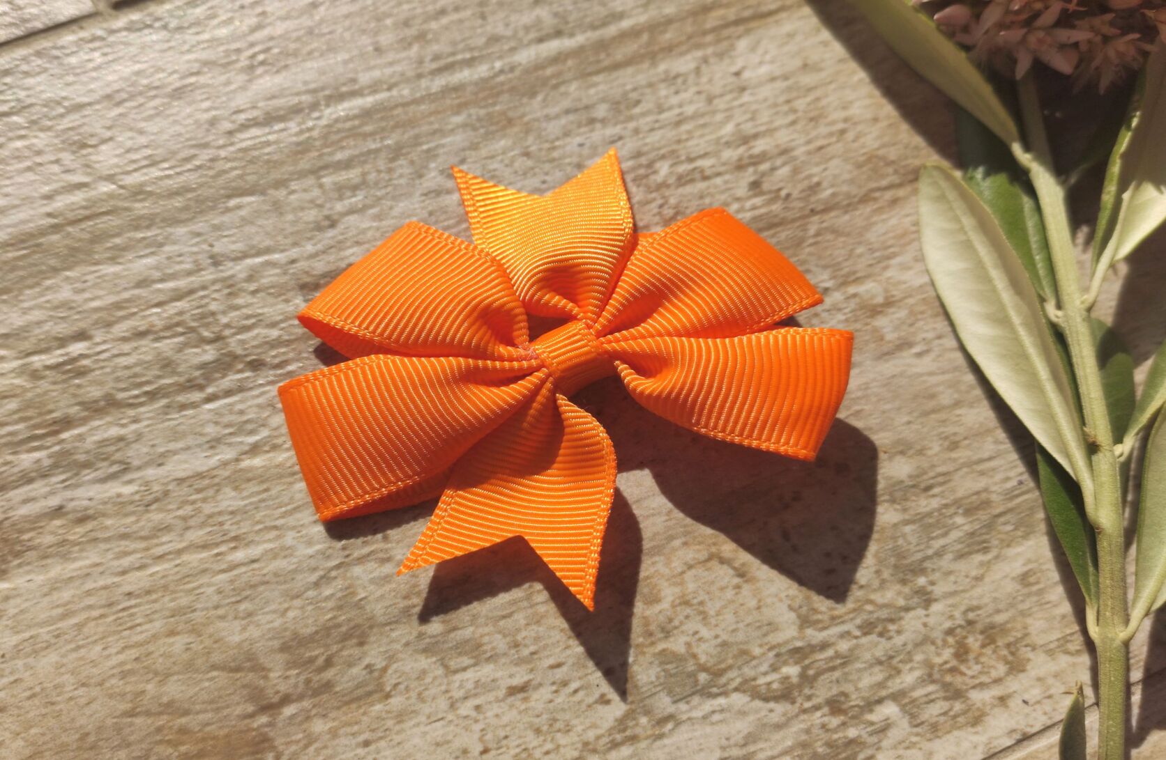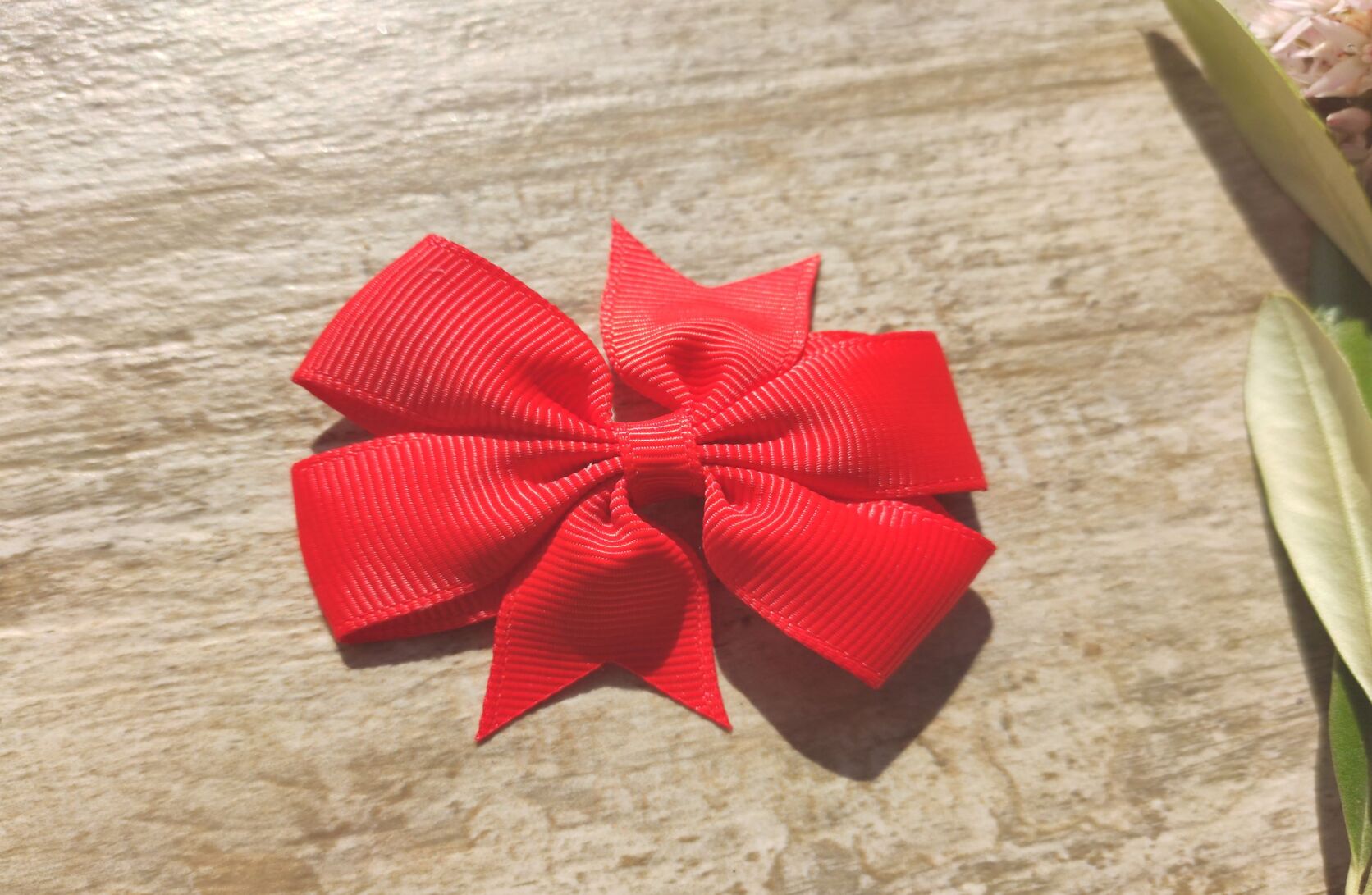 Colourful pinwheel hair bows made from grosgrain ribbon and fitted with an alligator clip.